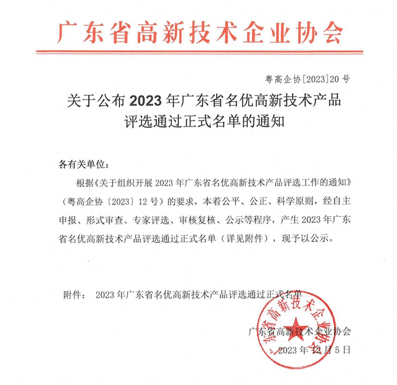 我司一產品獲評定為廣東省名優(yōu)高新技術產品