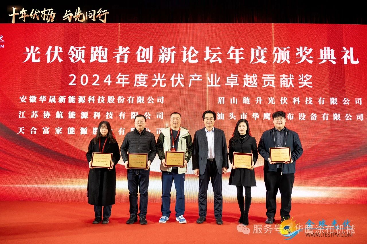 華鷹涂布設備榮獲2024年度光伏產業(yè)卓越貢獻和創(chuàng)新技術獎